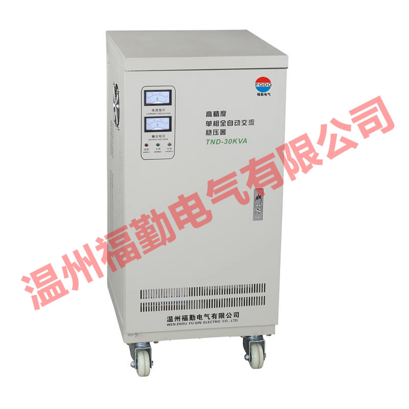 TND/SVC高精度全自動交流穩(wěn)壓器是由接觸調(diào)壓器、取樣控制電路、過壓保護(hù)、延時輸出電路和伺服電機(jī)所組成,當(dāng)輸入電壓變化或負(fù)載變化時,取樣控制電路進(jìn)行取樣、放大、使伺服電機(jī)按所需方向調(diào)整調(diào)壓器碳刷的位置,調(diào)整輸出電壓、直到符合額定值,故而達(dá)到穩(wěn)壓目的。當(dāng)輸入電壓過高或發(fā)生故障時,本穩(wěn)壓器過壓保護(hù)電路啟動自動關(guān)閉輸出,防止用電器受損。當(dāng)用于冰箱、空調(diào)、冰柜的穩(wěn)壓時,可選擇延時輸出狀態(tài),防止短時停電又來電時使壓縮機(jī)發(fā)生悶機(jī)而損壞。
